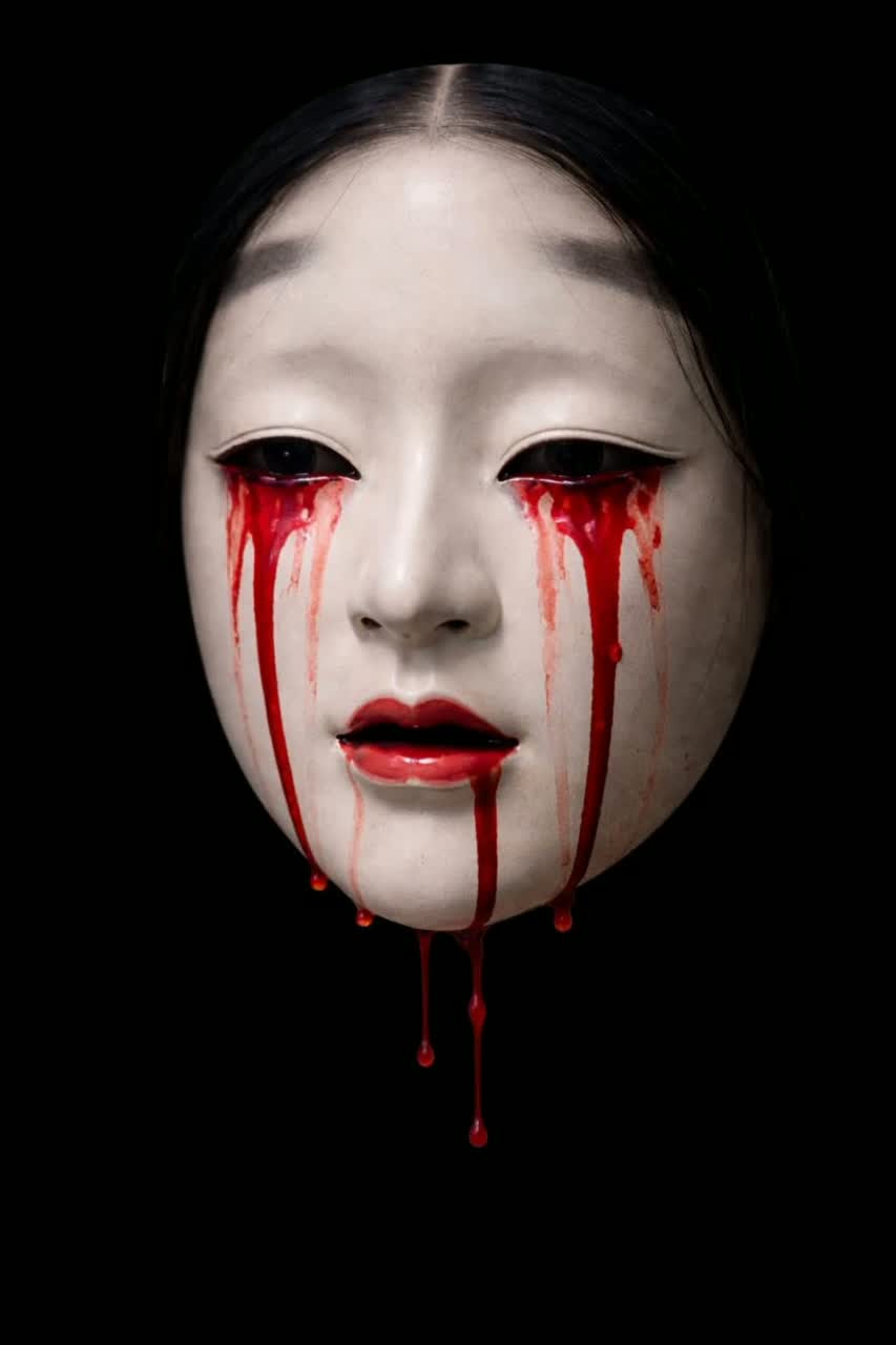Dark ambient Japanese fusion track with slow tempo (60–70 BPM), Haunting nohkan and shakuhachi drones, deep reverberated taiko-like percussion, sparse minimalist arrangement, Atmospheric silence, breath-like textures, subtle dissonance, Emotional post-rock guitar swells emerge gradually, restrained and mournful, Ethereal female whispers, mostly Japanese lyrics with poetic abstraction, distant and ghostly, Mood is tragic, eerie, ritualistic, and beautiful—stillness turning into quiet despair, Cinematic, art-house horror tone, minimal yet intense, focused on tension and emotional weight rather than volume, with long reverb tails and fragile, sorrowful harmonies, memorable melodies