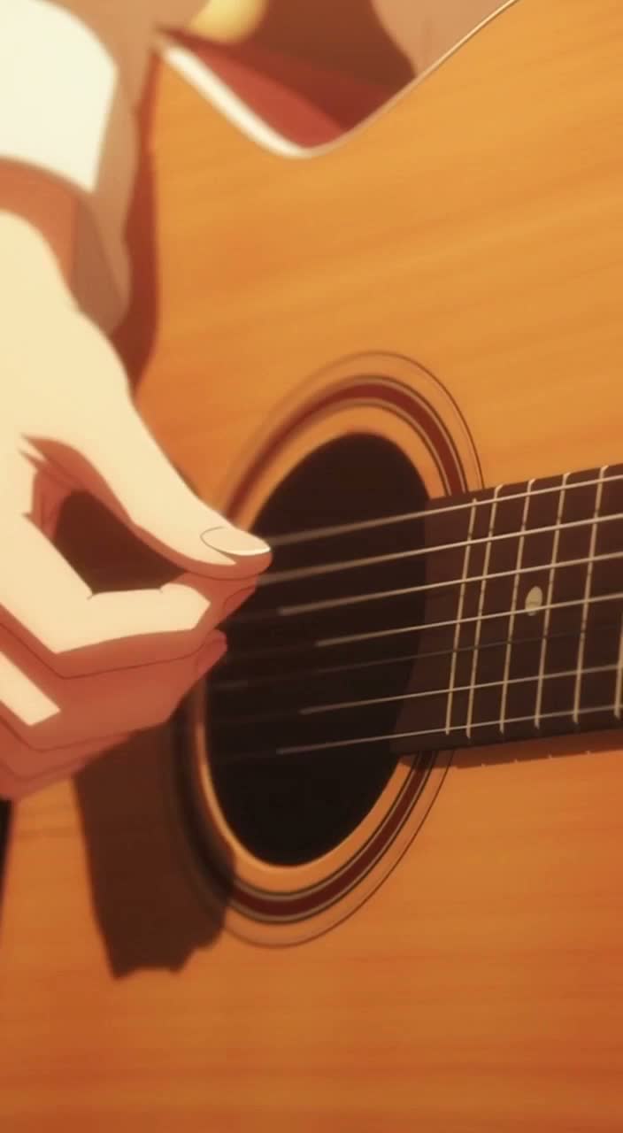 build: acoustic guitar arpeggio enters, soft piano chords and elegant strings (cello and violin) gradually expanding harmony