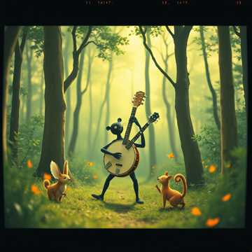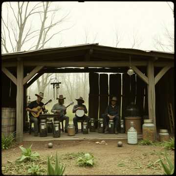 Banjo: 3-finger roll style, bright and bouncy, carrying the melody, Mountain Dulcimer: Provides a droning harmony and slides in with some melodic fills, Jug: Blown rhythmically to mimic a tuba or bass — lays down the “oom-pah” thump in the low end, Washboard: Played with thimbles or spoons, keeping the rhythm sharp with scrapes, taps, and occasional rolls, Vibe/Style: