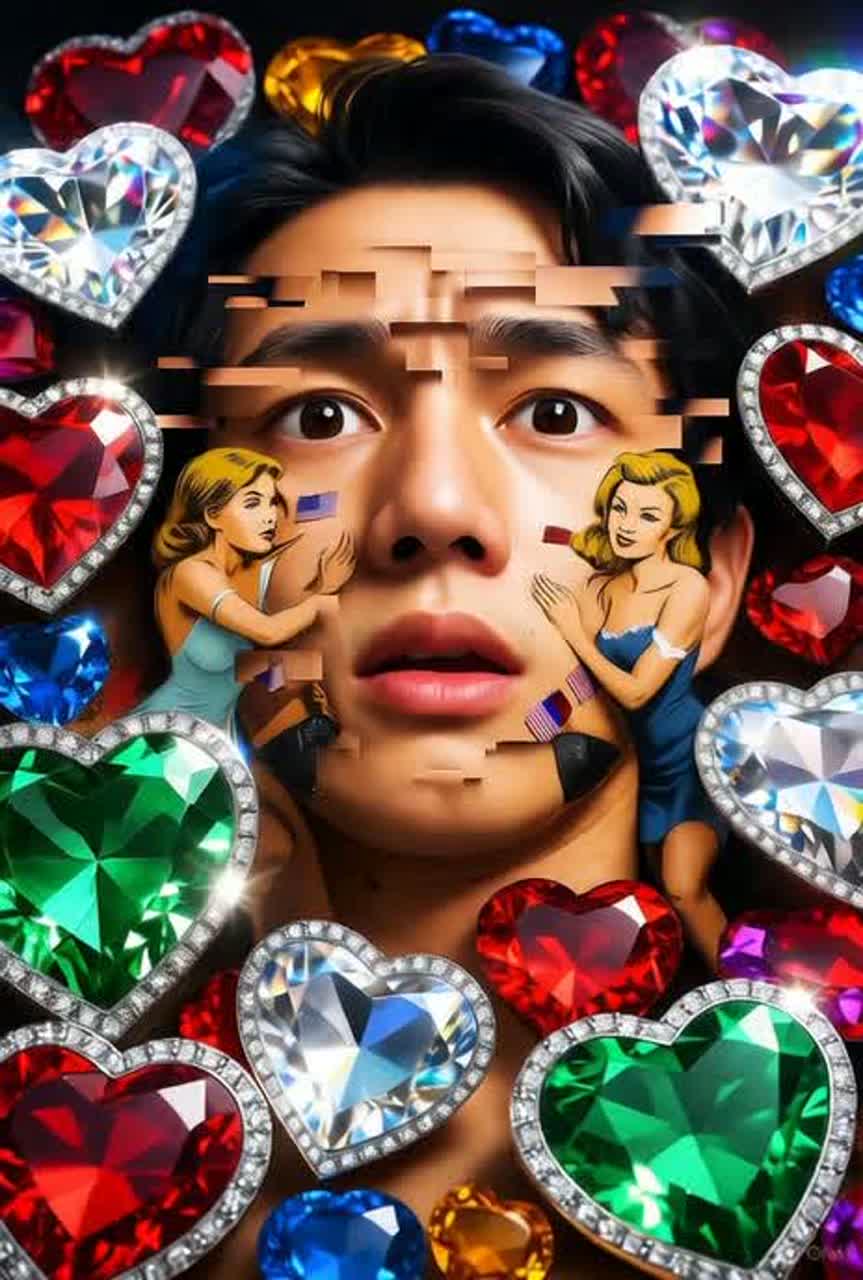 Create a high-energy, genre-fusion track combining high-speed techno, avant-garde garage rock, avant-garde blues, Japanese kayokyoku, and visual kei, The song features a seductive male vocal with strong vibrato, incorporating shouts, growls, gutturals, and screams, backed by lush, layered choruses, The vocal mix is upfront with a 3D sound effect, Instrumentation includes heavily distorted guitars, progressive guitar solos, and kayokyoku-inspired melodic guitar solos, The drums are unconventional and complex, blending hardcore techno rhythms with a fast tempo, The track includes frequent key changes (modulations) and intense breakdowns, The overall vibe is dynamic, experimental, and emotionally charged, with a bold, theatrical energy