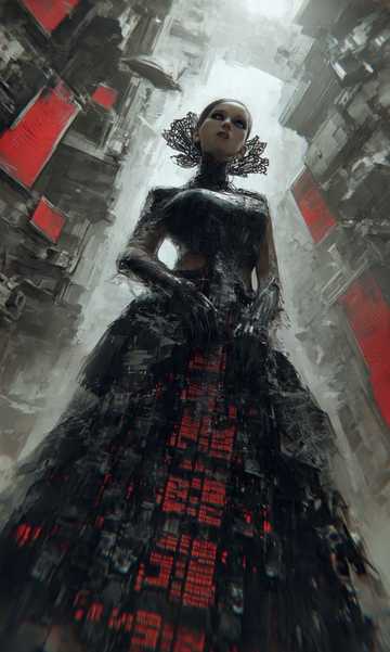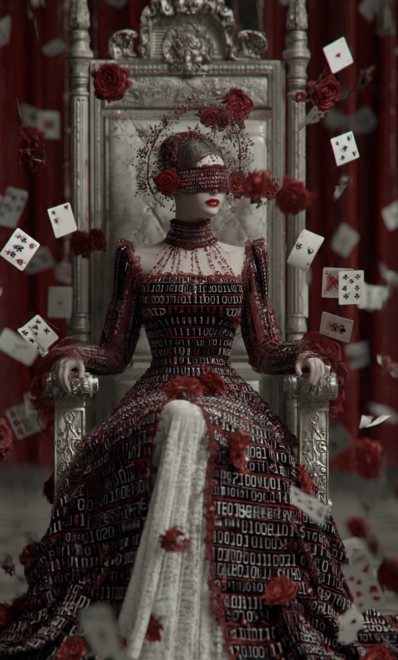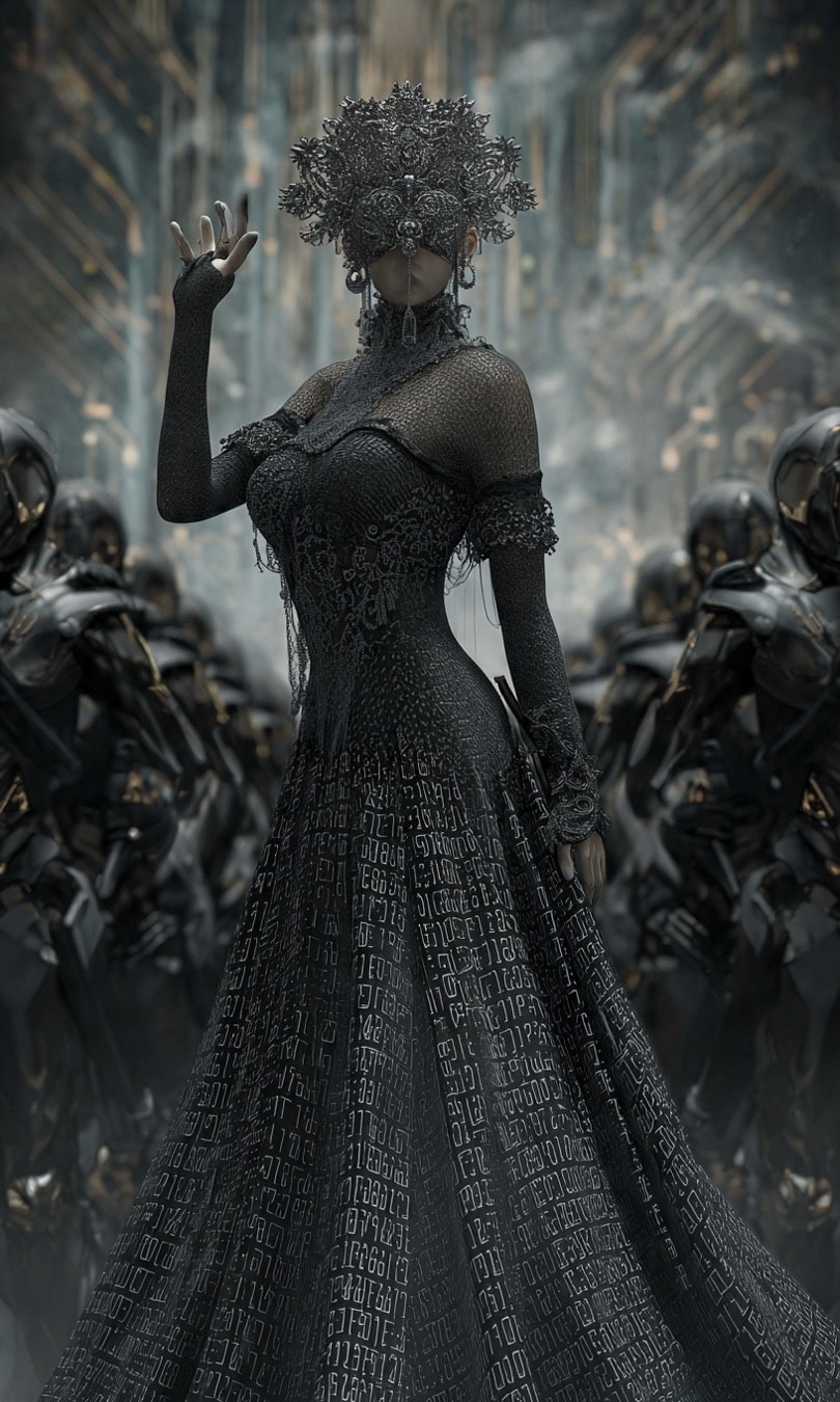 High-gloss trance fused with cinematic strings, Cold elegance, digital cruelty, Trio vocals weave precision and control—this is royalty coded in algorithms, not blood, A palace of firewalls, a masquerade of mirrors, Beauty is law, Flaws are treason
