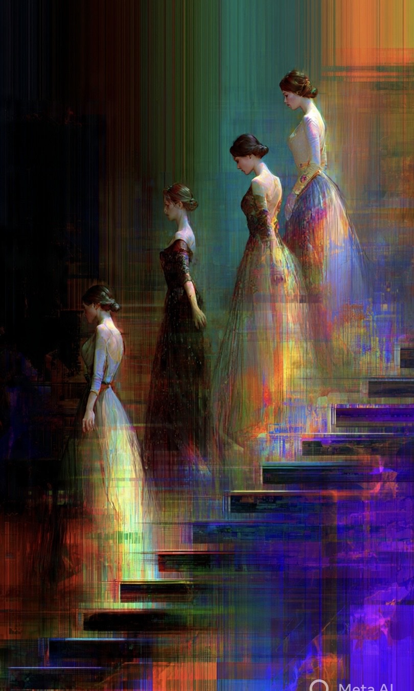 Ethereal trance with dark orchestral swells, Velvet synths, echoing footsteps, glitching harp motifs, Female vocals drift like a spell — telling of silken shoes worn down in hidden realms beneath the code
