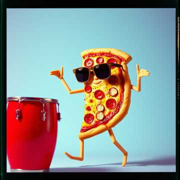 Funny latin cha-cha song with playful vocals, Upbeat tempo, latin percussion (congas, bongos, timbales), groovy bass, bright piano riffs, brass hits, Fun and comedic mood, as if dancing cha-cha while eating pizza, Catchy and repetitive chorus: 'Cha-cha-cha for pizza, cheese and salsa, mamma mia!', Lighthearted, humorous, perfect for a comedy dance scene