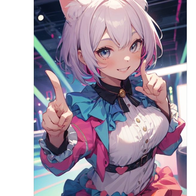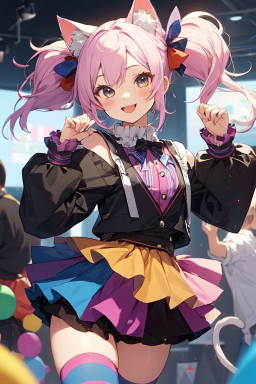 Scene Imagery: Neon-lit arcade, Cyberpunk city night, Anime opening, Magical girl transformation, Confetti cannons, Dancing pixels