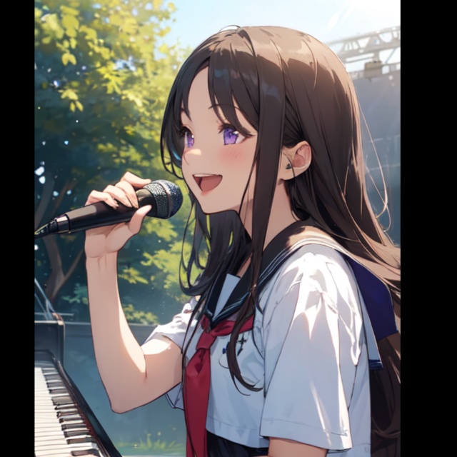 Soft and tiny+Kawaii female vocals, uplifting synth-pop, alternative-pop, j-pop indie, utaite, lofi rock, lollipop, anison, driving beat, emotional, enjoying, enjoying, enjoying, girls band, Chorus vocals, school festival