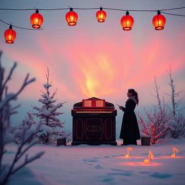barrel organ, thereminvox, psaltery, vocaloid, psaltery, harps, glockenspiel, flute, thereminvox, french folk, the saxophone, english horn, DJ turntables, breaks, thereminvox, music box, breaks, DJ turntables, young female voice
