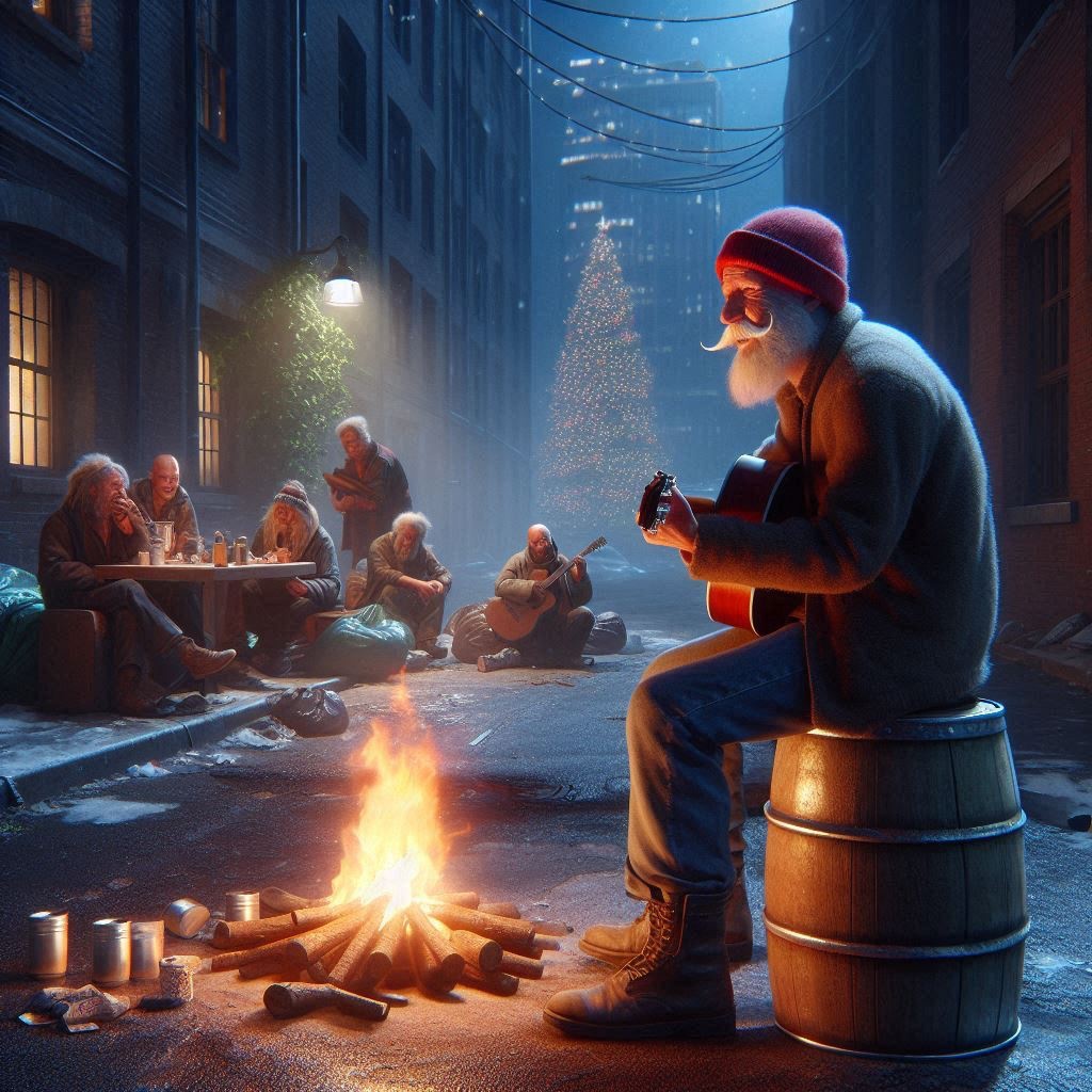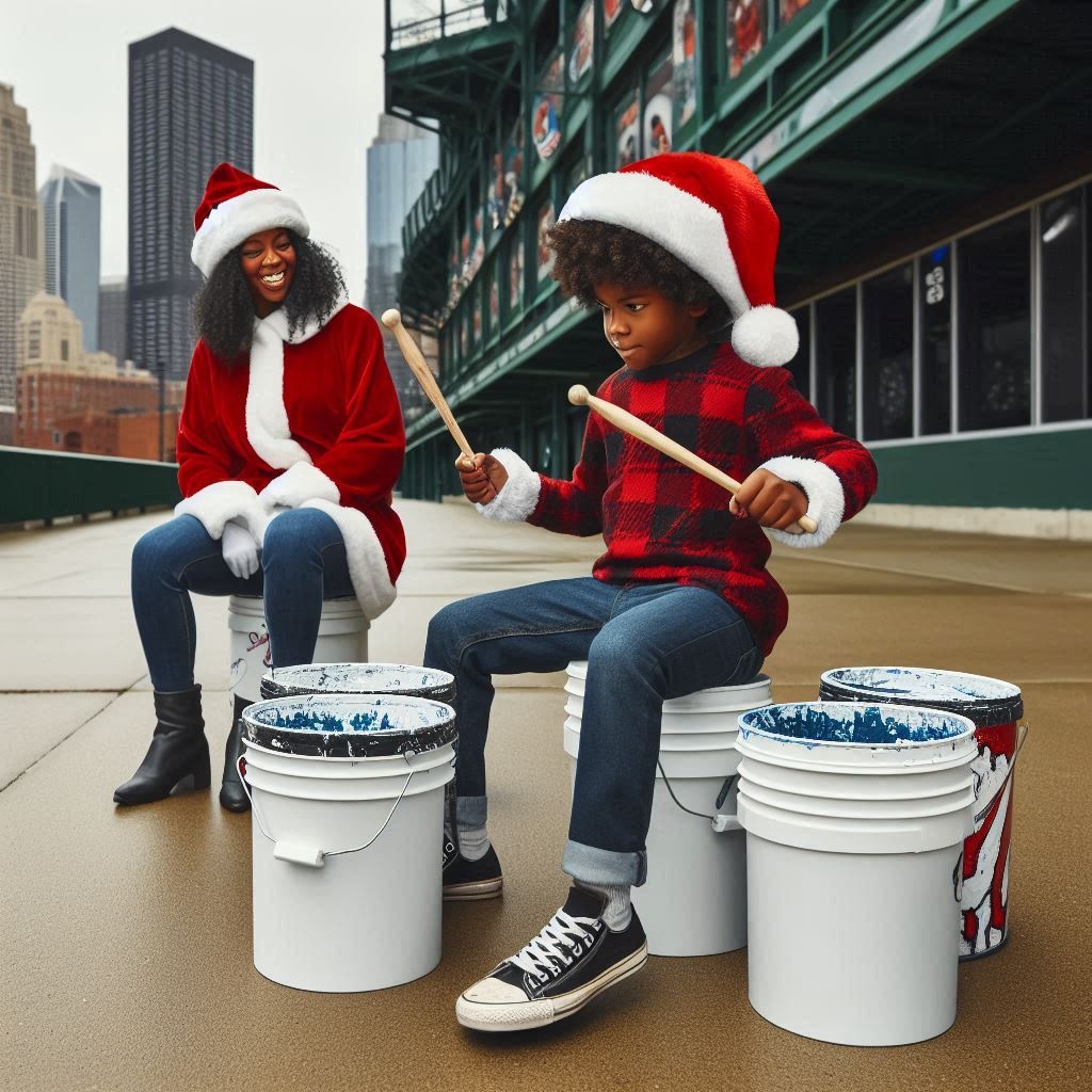 Christmas gangsta rap afrobeat r&B funk fusion, bucket drums, beatbox, guitar, bass, synthesizer, male vocals