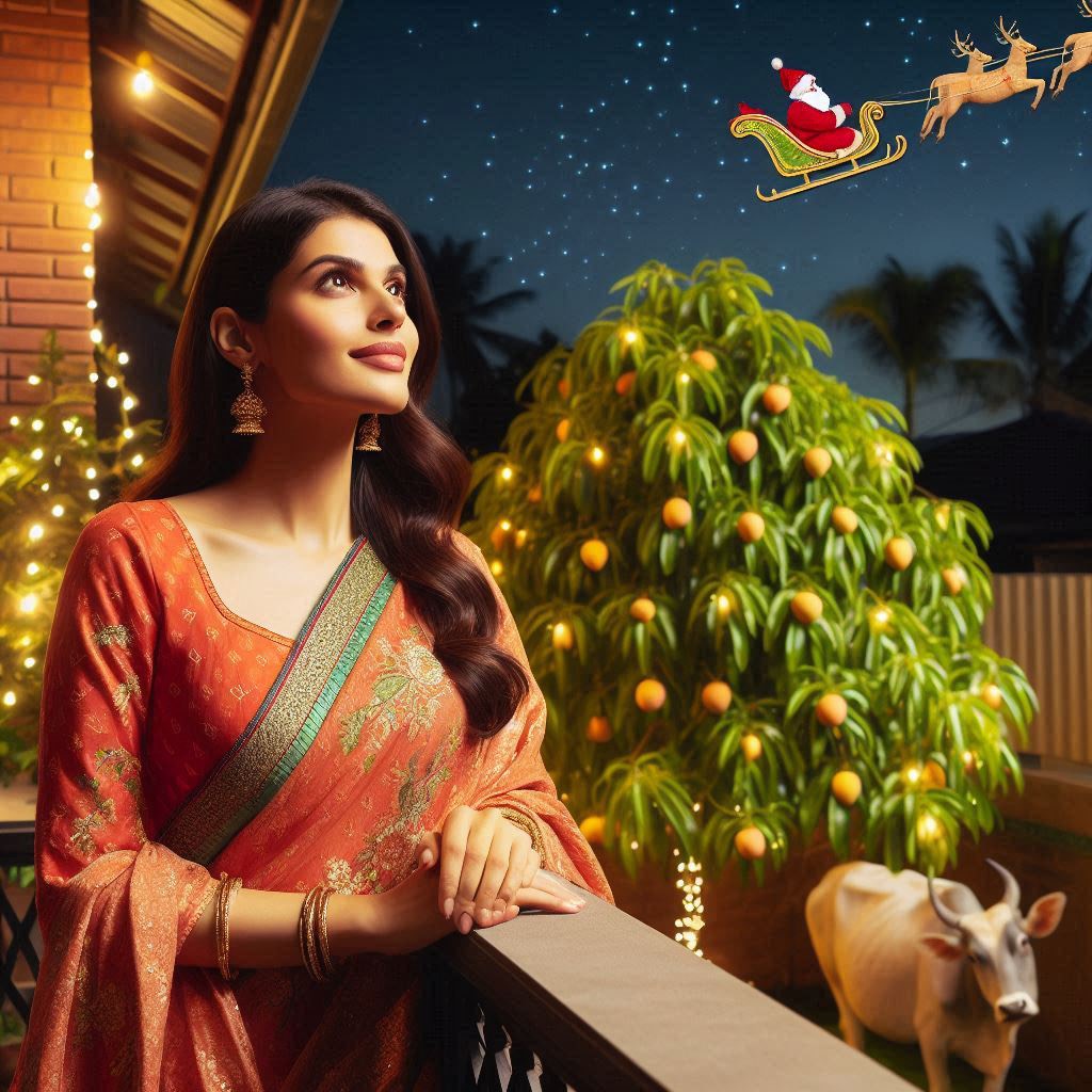 Bollywood Indian Christmas, sultry slow tempo emotional, Indian female vocals, sitar, flute, tabla, tanpura