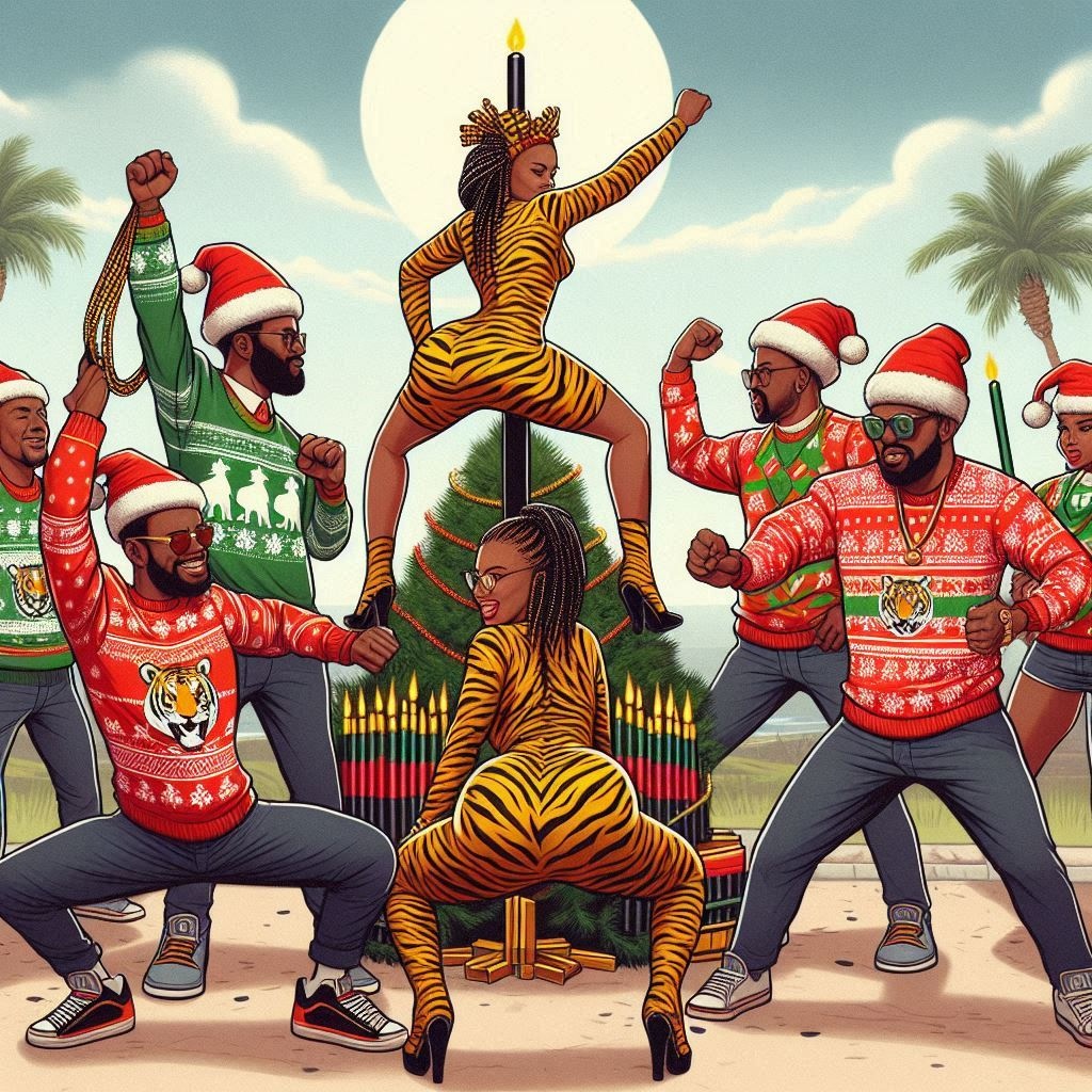 ghetto afro holiday Christmas blues fusion, African American Male Vocals, Raspy, Upbeat, Medium Tempo