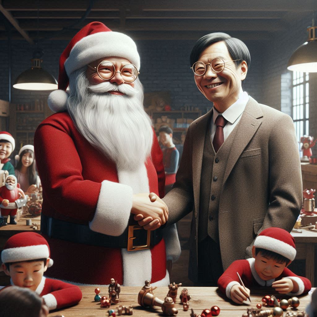 50s animated onminous Christmas orchestra song, slow-tempo, male deep bass vocals, cartoonish, spoken words