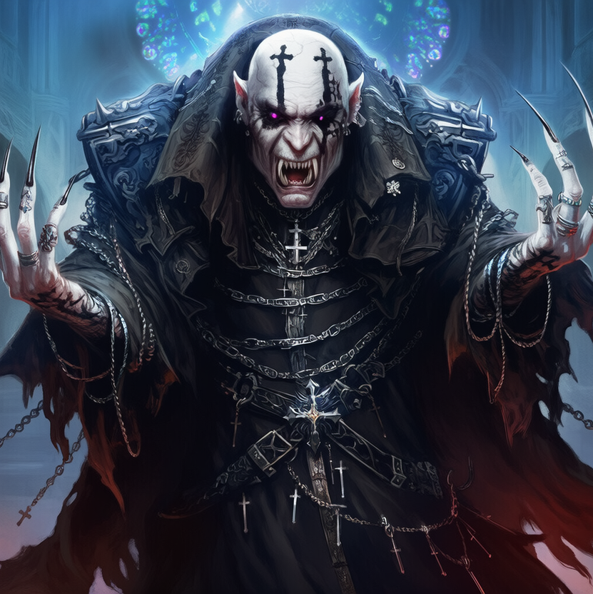 A heavy, dramatic fusion of gothic metal atmosphere, doom metal weight, and black metal intensity, Guitars should be slow to mid-tempo, dark, and distorted, with deep, resonant chords and occasional tremolo passages for tension, Drums are thunderous and measured, with big tom fills and slow, ceremonial rhythms, Bass is thick and moody, anchoring the sound like a funeral march, Vocals are deep baritone male, calm but commanding, shifting between cold spoken delivery, melodic chanting, and low growled phrases, The music should feel cathedral-sized — somber, vast, and regal — with subtle choir pads or organ to highlight grandeur, Overall tone: majestic, brooding, ancient power held in complete control