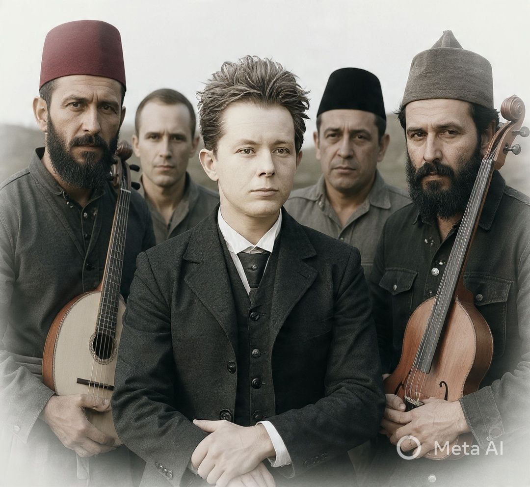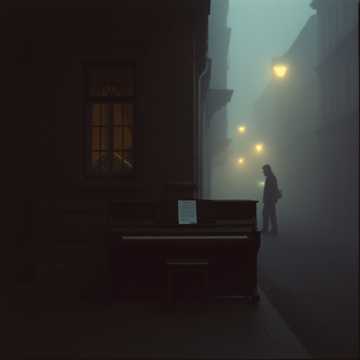 Silence and urban sounds, Prepared-piano textures, found-object percussion, male vocals almost spoken in close-mic intimacy, Spacious, aleatoric harmony: long rests, sudden bursts of ensemble clatter, distant radio-ish drones, then collapses back to sparse keys and room tone, Dynamic arc feels like a gallery performance gradually blooming, then evaporating into quiet, NO MODERN DRUMS, SLOW SONG, Piano as first instrument, Questions, Mistery, Random, Who are we
