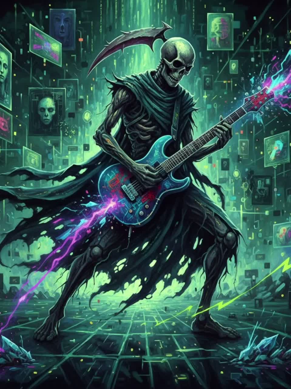 ravecore, big beat, synthetic vocals, breakbeat loops, wild animal sound FX, 90s jungle bassline, screaming robotic vocal hooks, glitchy ambient outro, alien, dark trance