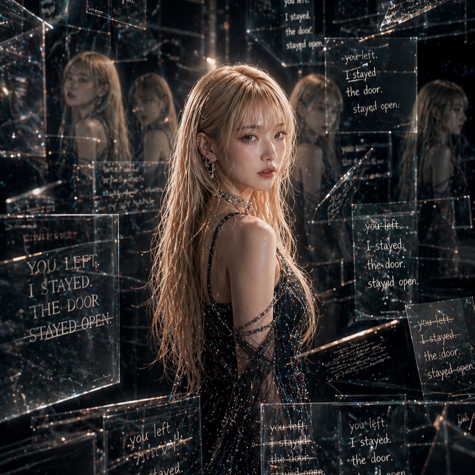 Vocal Style: Female lead (soft intimate verses, clean emotional choruses, increasing vocal fragmentation, layered whisper echoes in outro)
