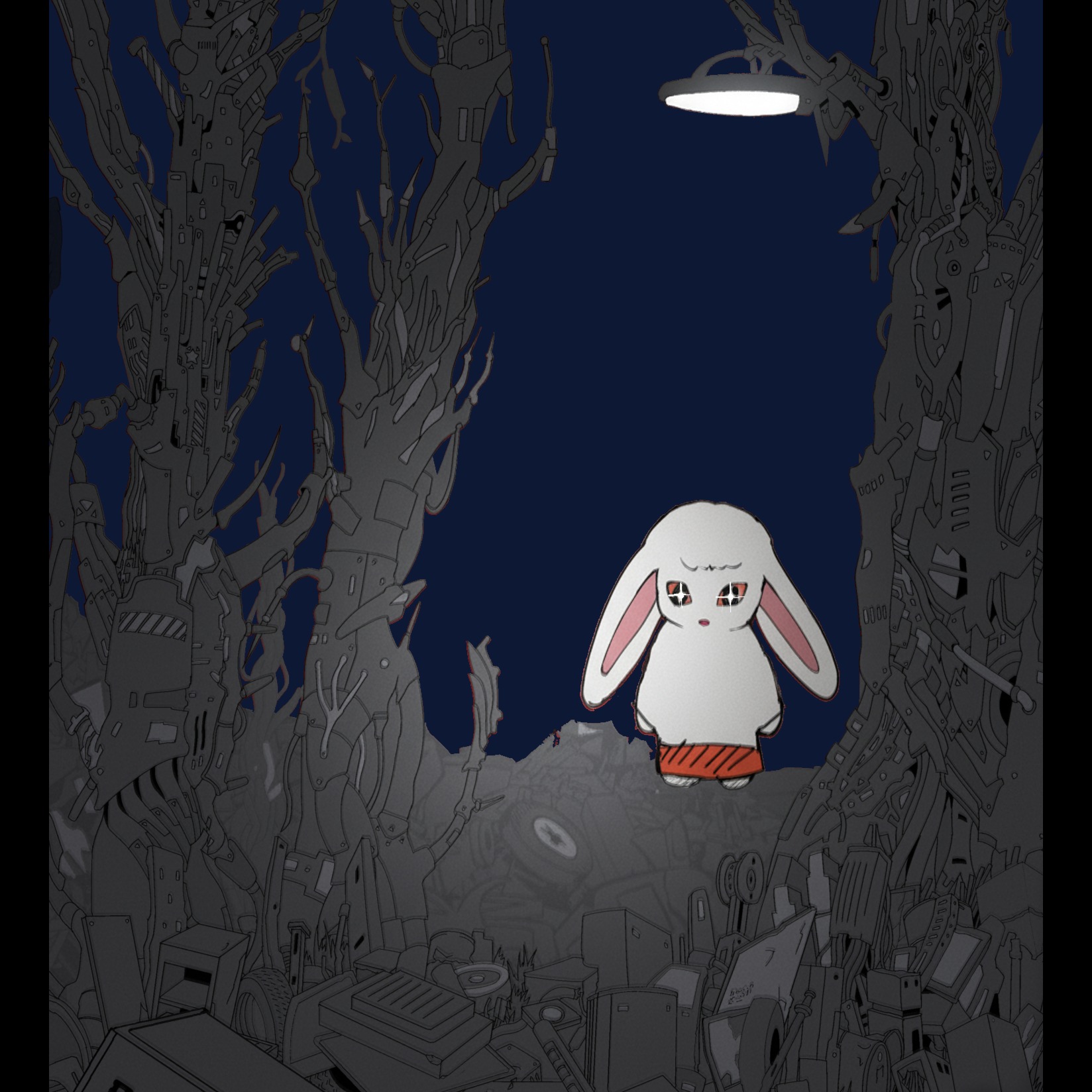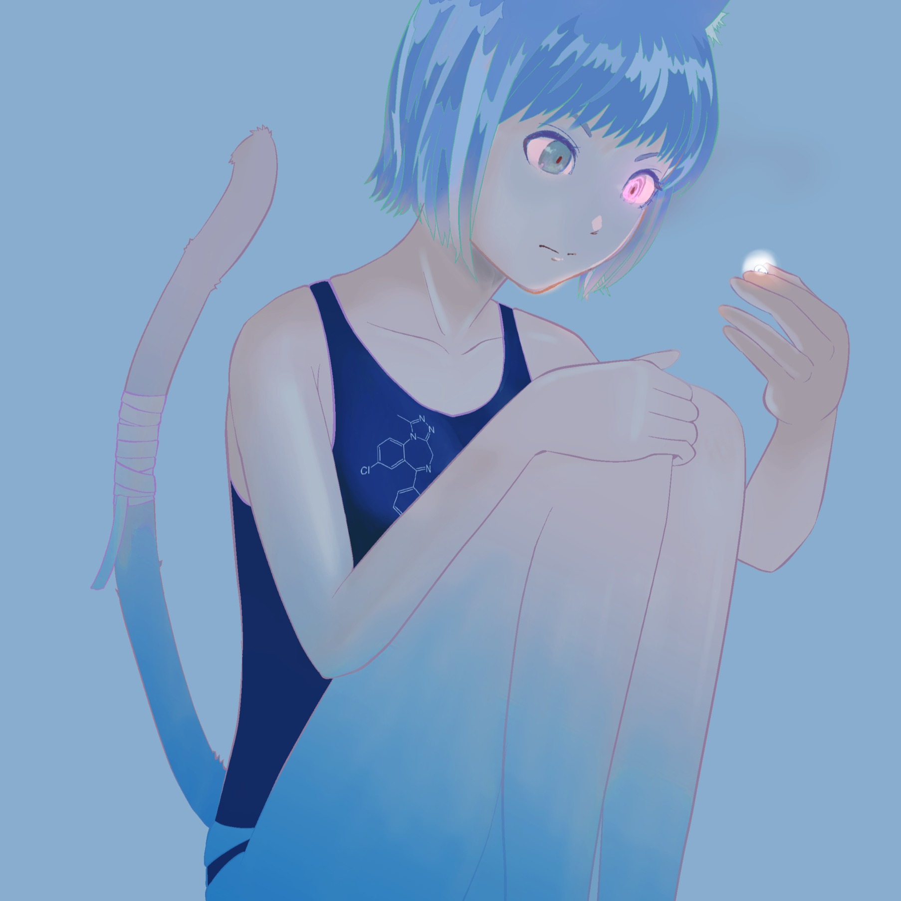 Minimalist glitch, Vocoder texture, Vocal as an instrument, Monotone repetition, Cold clinical atmosphere, Subtle rhythmic clicks, Experimental soundscape, Analog vocoder, Dry staccato electric guitar, Muted single notes, Minimalist glitch pop, Ethereal operatic background, Pointillism, High-fidelity, No reverb on guitar, Wide stereo, Clinical and clean, Electronic syllable, Dynamic structure Kawaii glitch, Bitpop