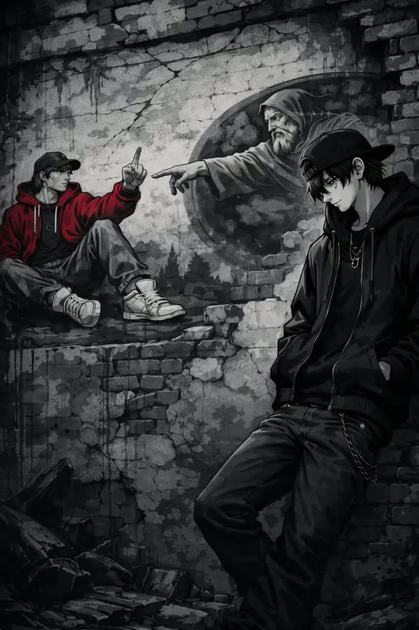 1990s boom-bap hip-hop track characterized by a playful, mischievous energy with a tempo of 92 BPM, The production features thick vinyl crackle, chopped jazz piano loops, warm Rhodes chords, lively upright bass, muted trumpet stabs, and DJ scratches, Drums are hard-punching with gritty kicks and crisp snares, creating a raw lo-fi texture, The MC delivers clever multisyllabic bars filled with punchlines, embodying a confident and cheeky flow, Themes revolve around childhood rebellion and mischief, with a catchy, chant-style hook featuring crowd echoes, The structure includes a scratch-heavy intro and is void of modern influences, emphasizing classic boom-bap elements and lyrical playful chaos