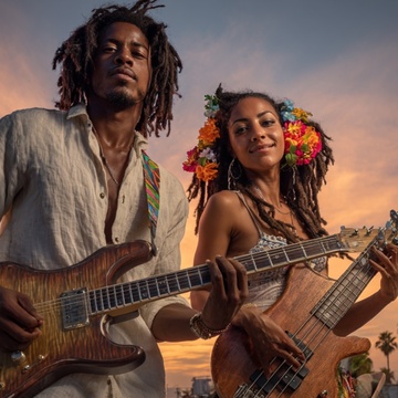 Create an upbeat, joyful reggae track with a lively tempo and a sunny vibe, Use bright rhythm guitar skanks, bouncy basslines, classic reggae drum grooves with a crisp hi-hat, playful keyboard stabs, and touches of horns or steel drums, The atmosphere should feel warm, fun, and danceable — like a sunny afternoon by the ocean, The vocals should be smooth and cheerful, with a melodic, singalong chorus and light harmonies, Capture a feeling of carefree happiness, community, and connection — perfect for swaying under palm trees or smiling with friends in the street, authentic accent
