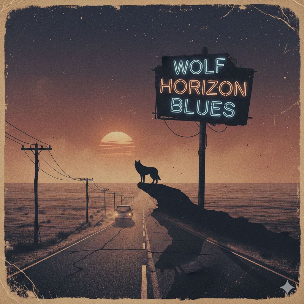 INTRO with solo slide guitar, slow and haunting, Delta Blues / Americana, Gritty gravelly male vocal, world-weary and soulful, Sparse arrangement: slide guitar, muted drums, bass, subtle harmonica, Tempo slow to mid-slow, Dark open-road atmosphere, dusty highways, night driving, lonely horizons, Emotional, raw, cinematic, Vintage analog warmth, minimal polish, Lyrics tell a long-road blues story with wolf imagery, restlessness, and quiet defiance, Fade out with slide guitar and ambient wind