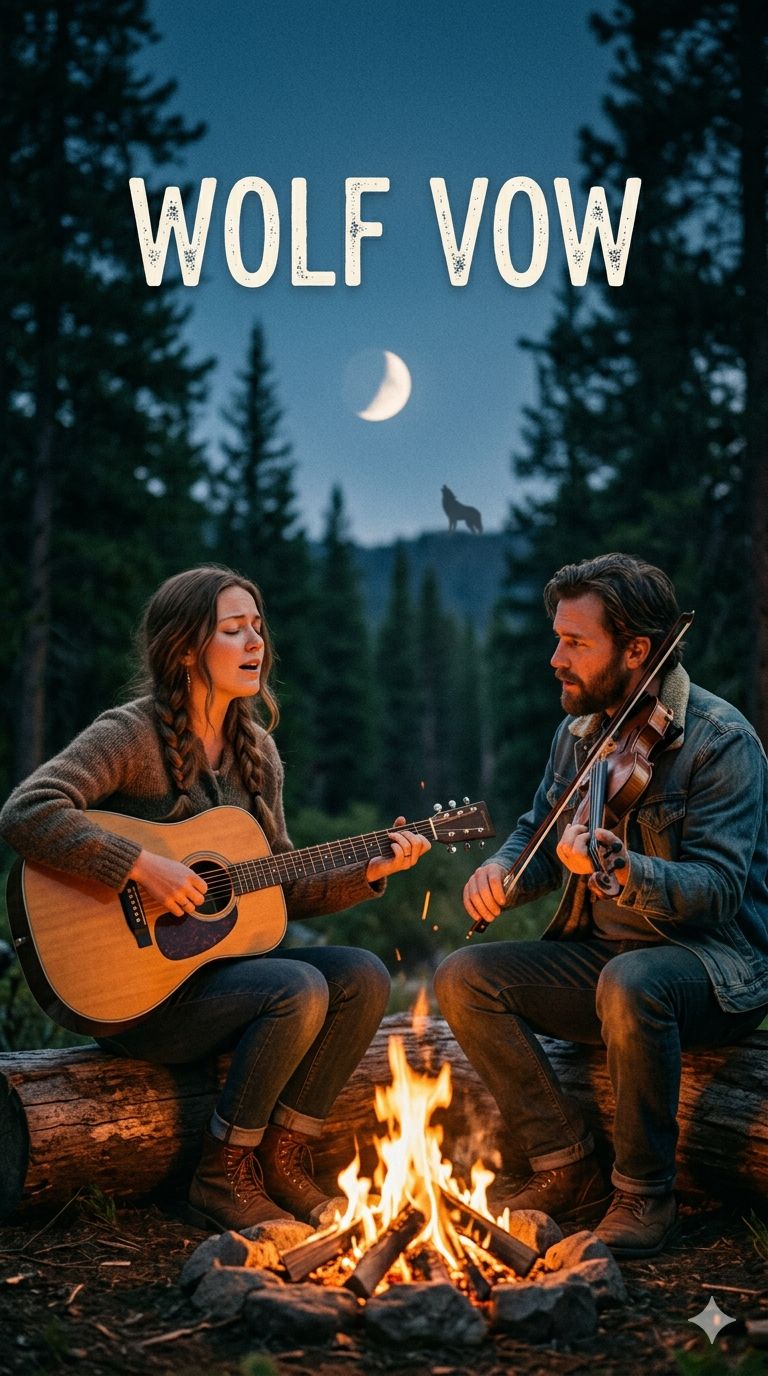 Intro with gentle acoustic guitar fingerpicking and soft night ambience, Folk Ballad / Storytelling duet with warm male and female vocals, Intimate verses with acoustic guitar, light piano, and subtle ambient pads, Chorus expands with rich vocal harmonies, upright bass, and soft brushed drums, Emotional, heartfelt atmosphere about devotion and promises made under the moon, Organic folk production, warm reverb, cinematic but rustic sound, Slow build from quiet storytelling verses to a powerful, emotional duet chorus