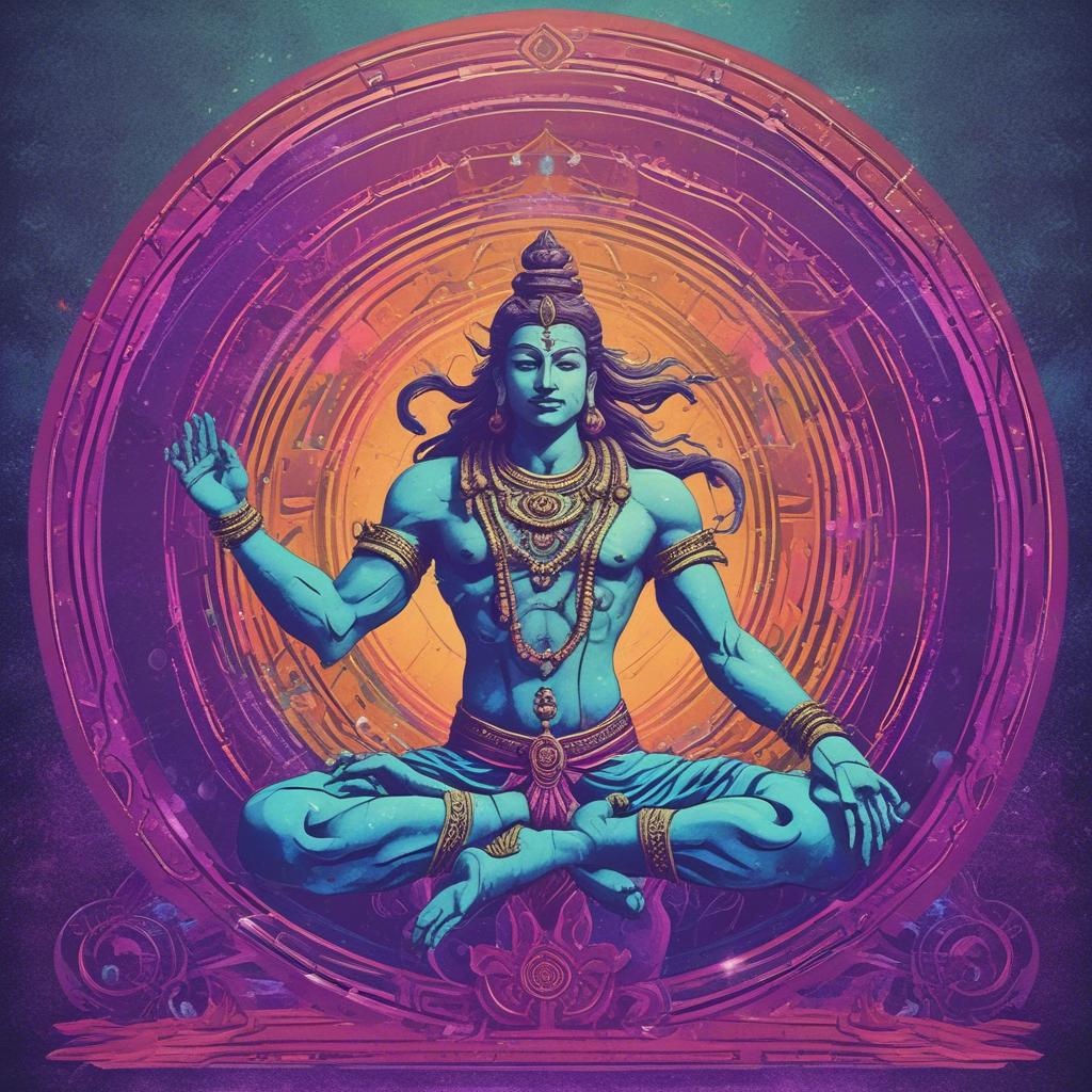 psy trance, psychedelic, synth, synthwave, radiating pure bliss and divine connection with Mahadeva
