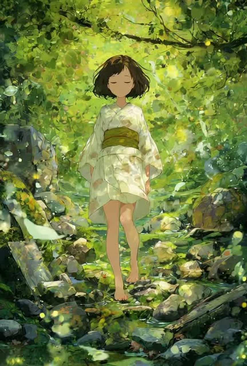 Experimental Oriental New Age × Ambient Nature Soundscape(BPM 62–85, flexible tempo), Evolving layers of guqin, bamboo flute, shakuhachi, and harp drift with cicada chorus, rustling wind, and subtle water textures, Use shifting rhythmic tension — loose, breathing pulses that tighten and release — to mirror the flow of memory and time, ✦ Intro – field ambience and slow drone ✦ Verse – free-flow melodic phrases ✦ Bridge – glitchy percussive accents and reversed tones ✦ Outro – dissolving into dusk, Vocals: airy humming, fragmented whispers, Mood: poetic, organic, dreamlike — a meditative summer dream with experimental flow