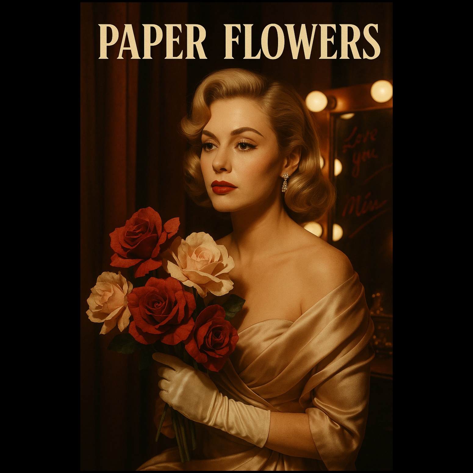 A sweeping theatrical 1960's ballad with full orchestra, Dramatic, emotional, bittersweet, Broadway-style finale about fame, legacy, and fading into myth, continental accent, female voice, soprano voice, fast tempo, solo voice