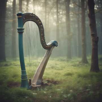 Harp melody, calm, strangely unfinished and broken off, a lament for the dead, elfin music