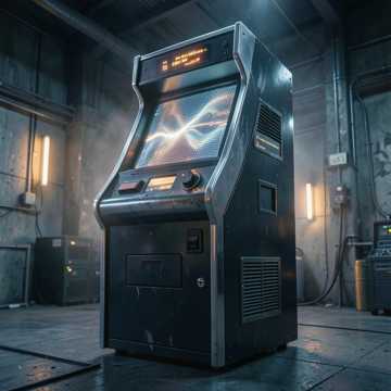 dark trap with 1990s arcade synths, distorted 808s, fast hi-hats, industrial percussion, layered digital tones, cyberpunk warehouse atmosphere, calm hypnotic vocal, repetitive and controlled, slightly eerie, not ambient