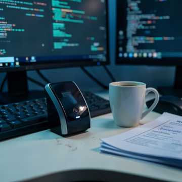 dark trap with 1990s arcade synths, distorted 808s, fast hi-hats, industrial percussion, layered digital tones, cyberpunk warehouse office atmosphere, calm observant vocal, subtle and controlled, not ambient