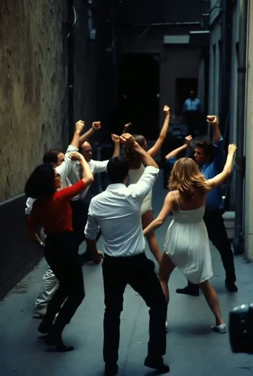 Neo-80s Fusion: 108 BPM, E minor, Dual lead vocals—male and female, never harmonizing, only overlapping in final outro, Verses alternate between voices; choruses feature call-and-response phrasing, Lyrics in English, final lines in Spanish for emotional intimacy, Rhythm section: sequenced Moog bass, LinnDrum with gated reverb snare, syncopated hi-hats, Melodic layer: granular-processed nylon-string guitar used rhythmically (no melody), Emotional climax: distorted tenor saxophone with analog delay—raw, bluesy, non-melodic—enters only in bridge as disruptive human element, Synths: DX7 infinite-reverb pads, Juno-60 arpeggios, Oberheim tension layers, No backing vocals, Structure avoids traditional chorus repetition; tension built through vocal separation and rhythmic syncopation, Production: dry vocals, wide synths, bass centered, sax panned dynamically, Emotion: near-miss destiny, parallel lives, love as unsynchronized signal—elegant, bittersweet, sonically precise