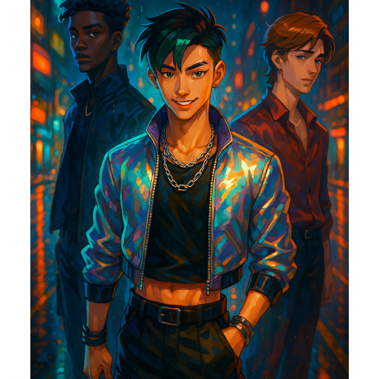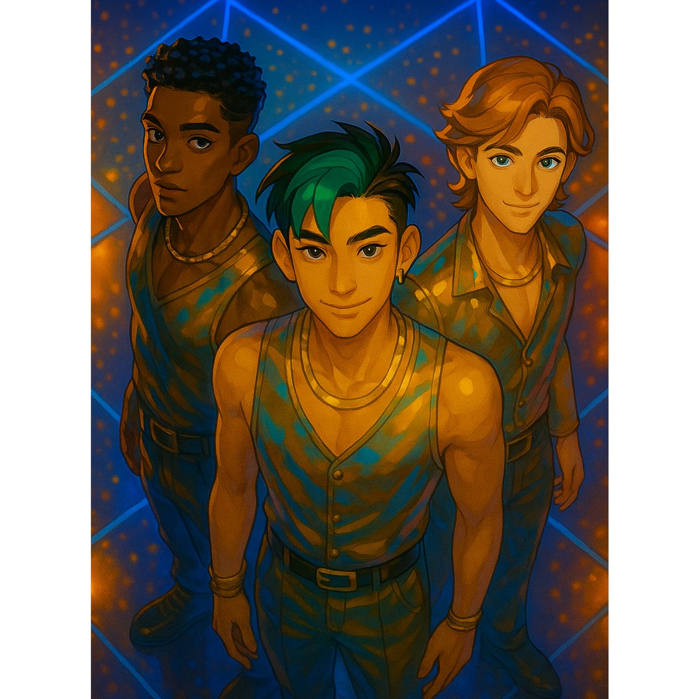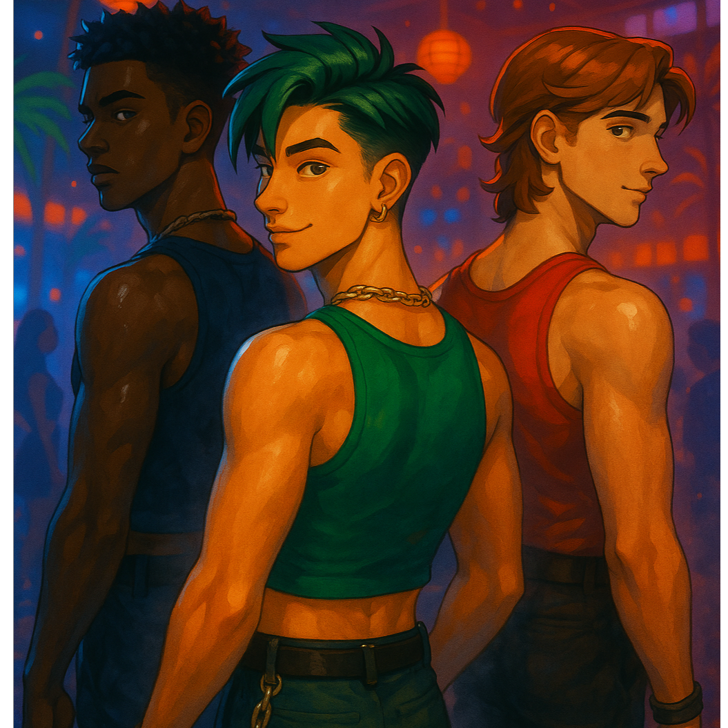 3 Boys, K-Pop Group, SynthPop, Neon Jazz, Groovy R&B, Dynamic Ballad, Three Vocalists, Layered Vocals, Nostalgic, Intimate, Sensual, 3 VOCALISTS: