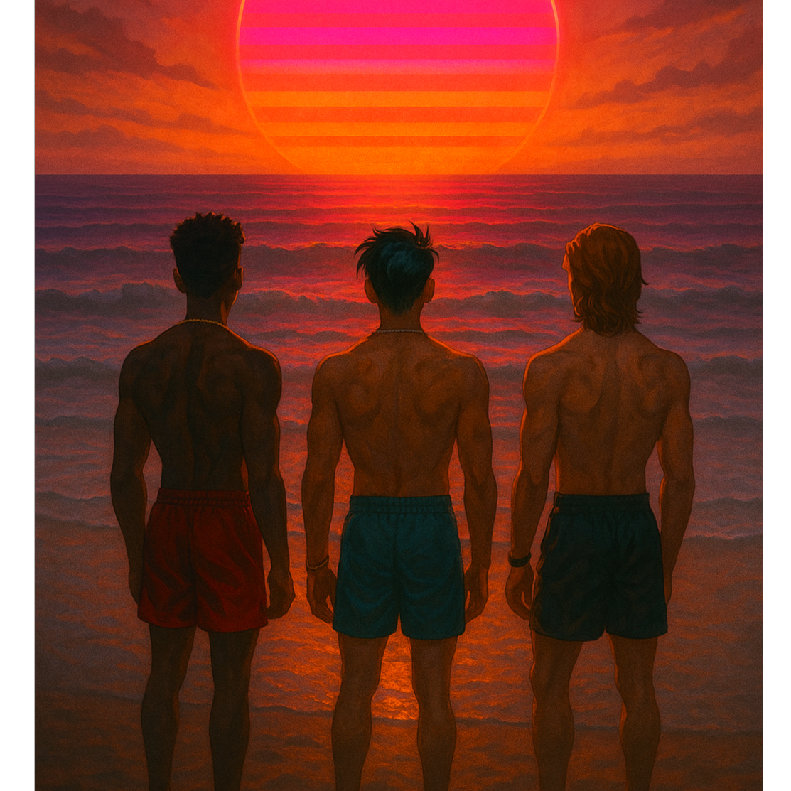 3 Boys, K-Pop Group, Brazilian Reggae, Samba Pop, Synth Phonk, Three Vocalists, Emotional vocals that move from intimate whispers to powerful belts, Layered Vocals, Tone Change, Cinematic, Emotional, Luminous, Summer Anthem, 3 VOCALISTS: