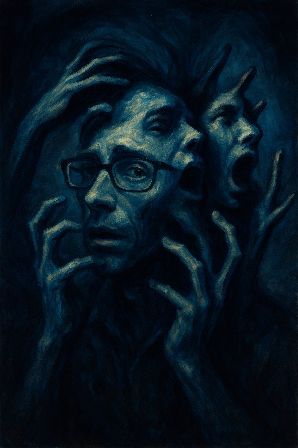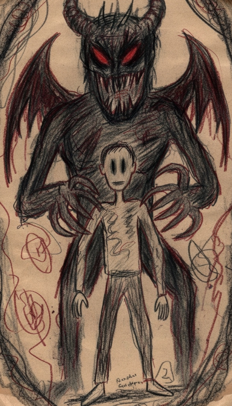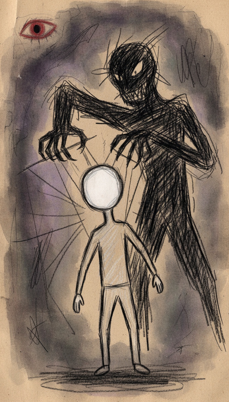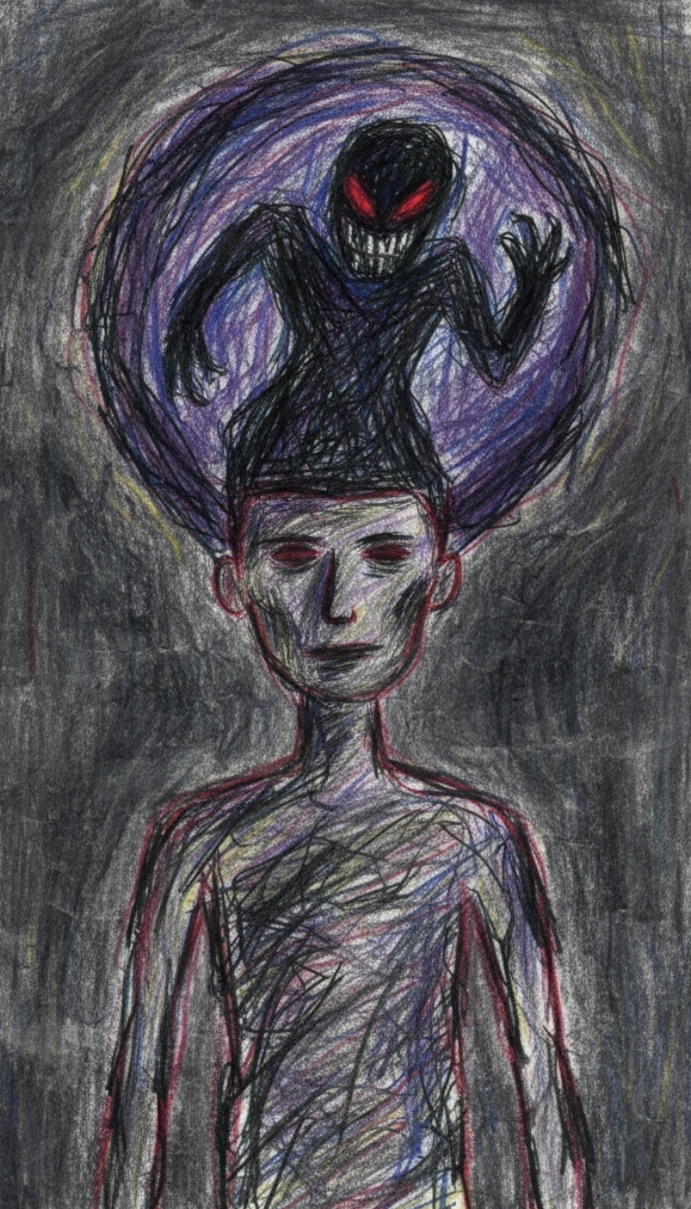 Dark ambient metal rock with slow, crushing distorted guitars and suffocating low-end drones, The track is driven by heavy, dragging rhythms and industrial percussion, creating constant pressure and dread, A demonic inner voice appears throughout as whispered and spoken vocals, close-mic, breathy, cracked, and distorted, sounding exhausted, cruel, and intimate, These whispers feel painful and intrusive, as if digging into the mind rather than commanding it, Lead vocals are strained, fragile, and desperate, contrasting the voice’s calm cruelty, Ambient noise, feedback, scraping textures, and distorted laughter fade in and out, intensifying the sense of mental collapse, The song slowly escalates into violent, cinematic metal sections, then pulls back into near-silence where the whisper returns, making the listener feel trapped inside the mind with no escape