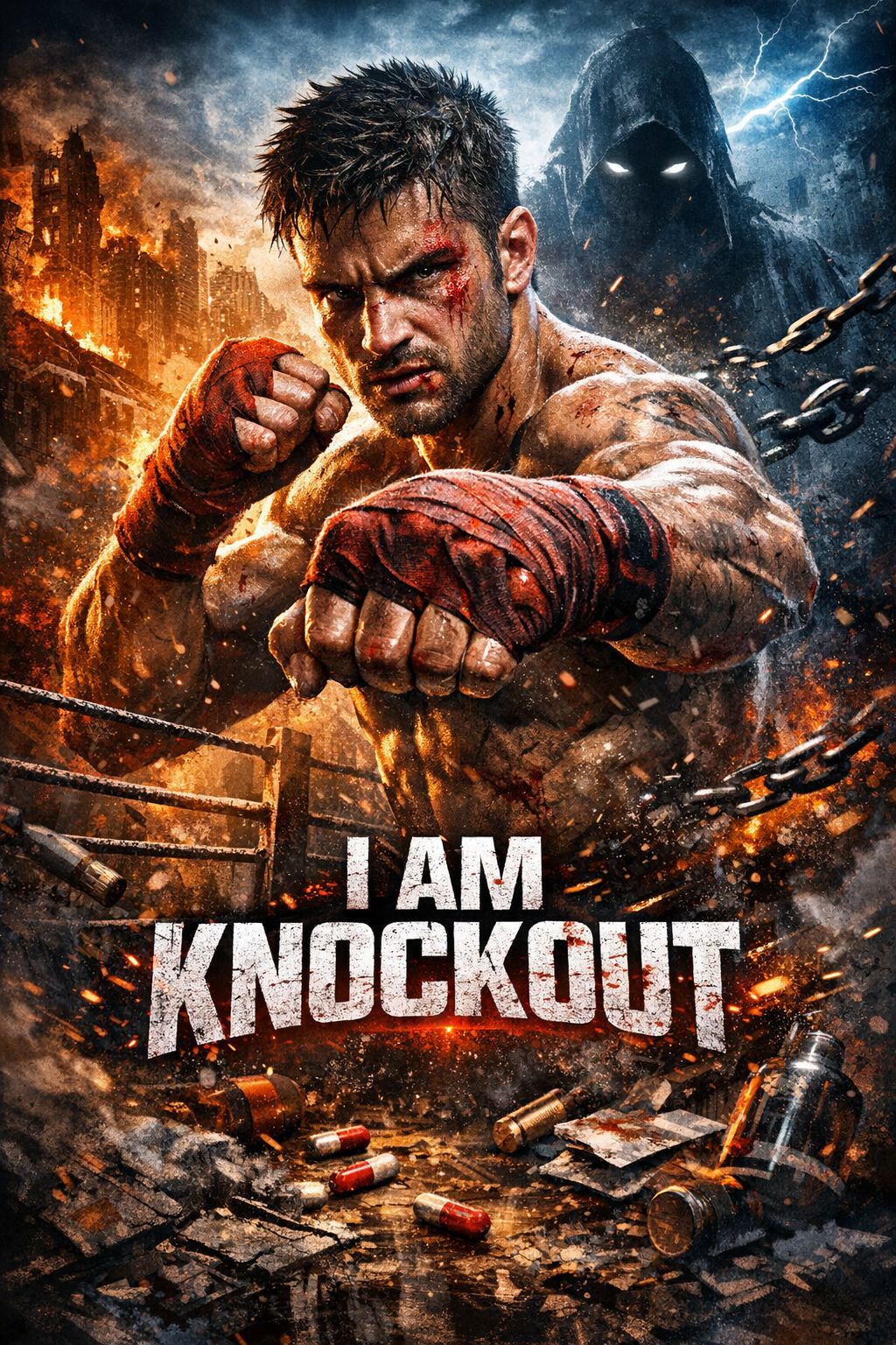 A high-energy cinematic rock track with aggressive rhythm and raw power, Distorted guitars, punchy drums, and driving bass create unstoppable momentum, while intense male vocals add emotion and grit, Synth layers and atmospheric effects amplify the tension, blending modern rock and industrial energy, Explosive, rhythmic, and epic — built for adrenaline and impact