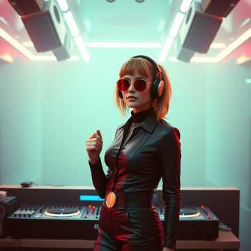 Minimal techno meets circus waltz, with pulsing beats, eerie calliope, and vocal glitches, female ghost vocals