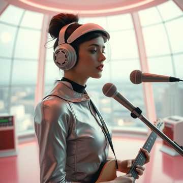 Mechanical synthpop pulse with analog textures, vocoder layers, and onomatopoetic robotic voices in minimalist rhythms, Female ghost vocals, vocal hallucinations, onomatopoetic