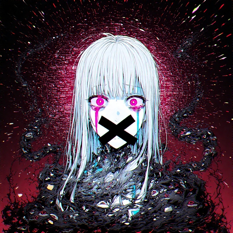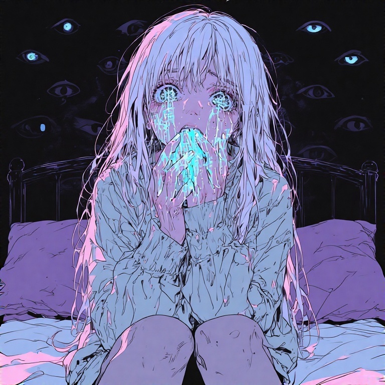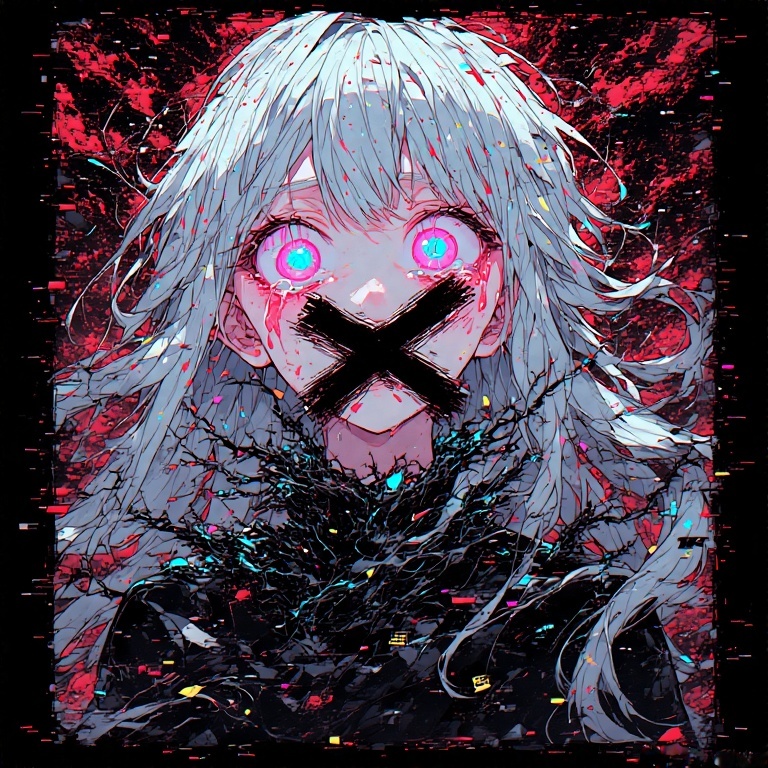 Dark lullaby intro with celesta and music box, glitchy effects, and soft VOCALOID female vocals, Drop into relentless death metal riffs blending with metal-pop synth layers, Technical guitar and synth solos clash with bubblegum pop kawaii VOCALOID hooks, Trap hi-hats, distorted bass, nightcore tempo shifts and pop ballad bridges create a horror pop kaleidoscopeāeach section morphs textures, fusing brutality, sparkle, and digital gloss