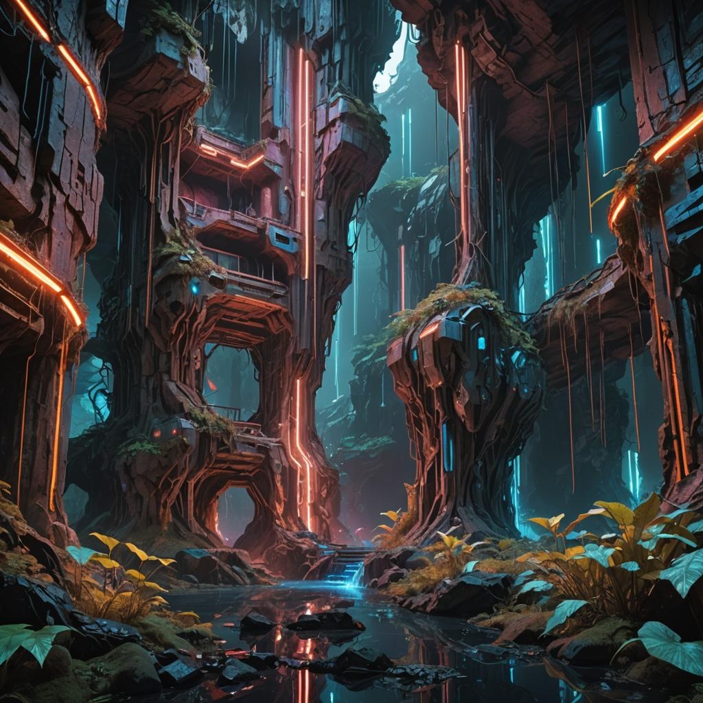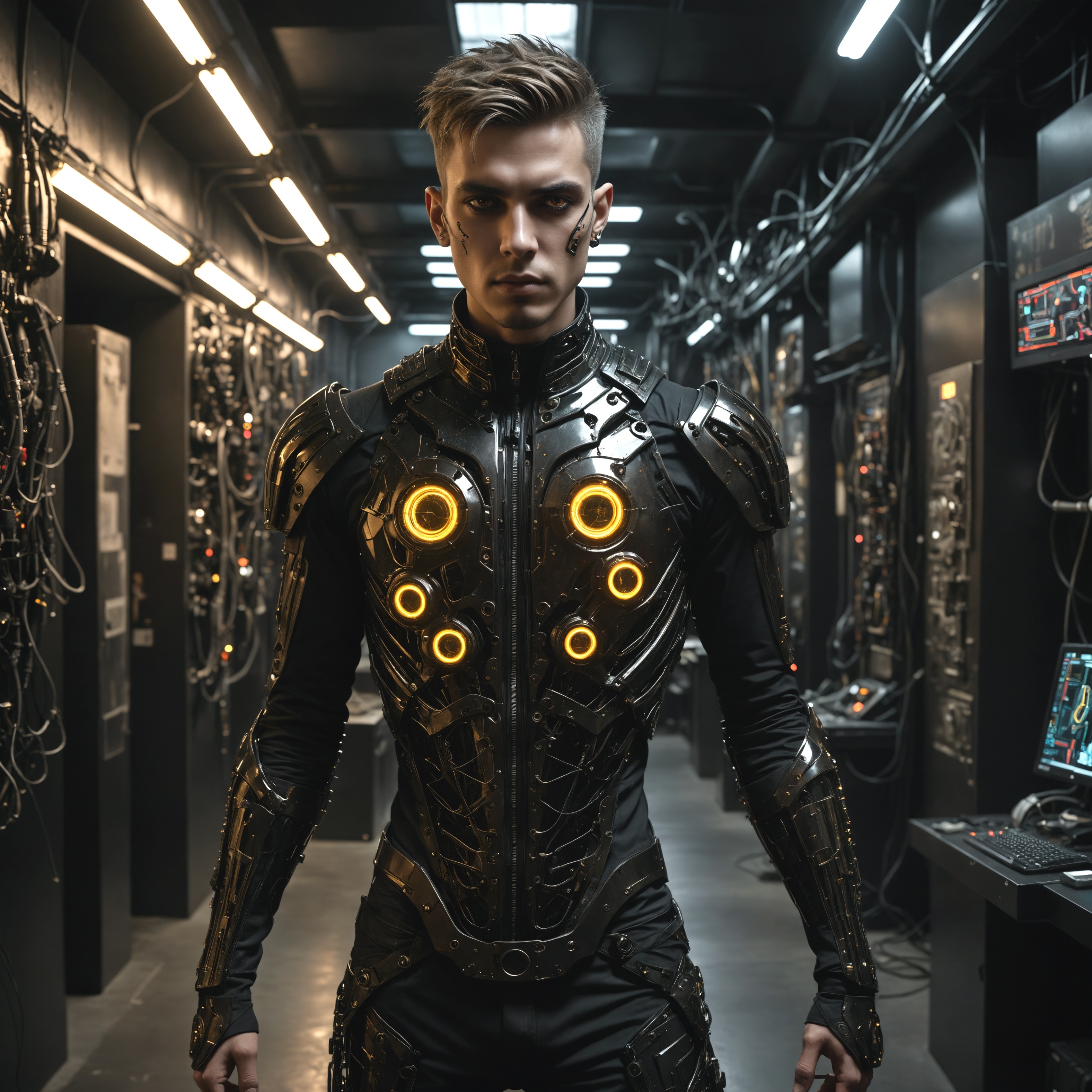 warriors, epic, gothic chorals, Oval cyber-glass tubescape made from teinted carbonised neon-fiberglass cyborgs