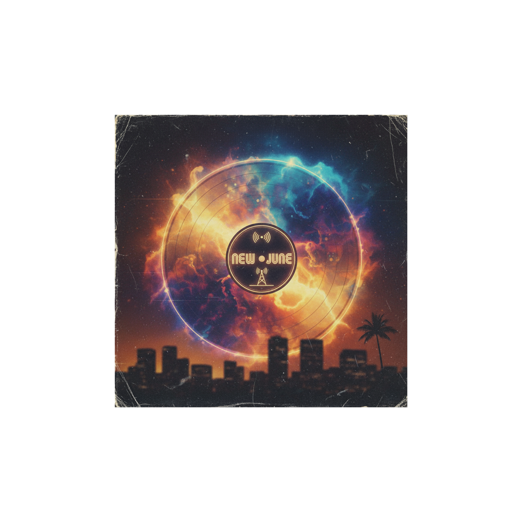 Create a soulful, cinematic electro-funk rock track (~90 BPM) — organic, nostalgic, and full of analog warmth, Build it from a hazy vinyl sample loop: mellow Rhodes chords, fluttering guitar, and faint brass, Drums are loose and dusty — layered breaks, side-chained kicks, and swing that breathes, Bass is deep, round, and melodic, gliding between live feel and synth warmth, Add filtered pads, reverse swells, and chopped vocal snippets that drift like memories, Mid-section opens into lush strings and reverb-drenched guitar before snapping back with a thick, emotional drop, Sound design: tape hiss, vinyl crackle, saturated bus compression, Mood: late-night radio — soul meets cosmic flare