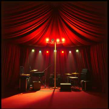 Create an experimental big-top hip-hop break track (100 BPM, E minor), The energy should feel live, powerful, and cinematic — blending dub, hip-hop and breakbeat elements with a big-top performance feel — bold, dramatic, and larger-than-life, Drums: huge and dynamic — fat kick, crisp snare, tight hats, rolling tom fills, and accented crashes that drive momentum and give a sense of scale, Bassline: deep, modulated sub-bass with analog wobble, saturation, and rhythmic movement that syncs tightly to the groove, Melodic layers: haunting Rhodes and piano stabs fused with brass stabs, cinematic strings, and dub-delay horns that rise like a live band under stage lights, Builds & drops: grand and dramatic — begin minimal and moody, then swell into a massive drop with layered synth bass, glitch fills, horn blasts, and heavy crowd-energy pulse, Include tape-echo feedback, vinyl crackle, reversed hits, and long delay trails for that vintage-meets-modern texture