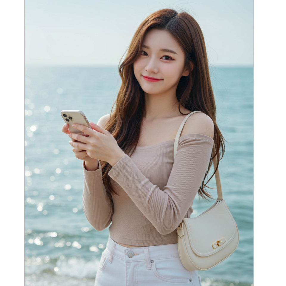Mid-tempo Korean pop Dance, 96BPM, Bright and rhythmic clean electric guitar riff (repeating as Hook, not sung), Soft ambient pad, light acoustic harp textures, and minimal kick/snare groove (brush style) to provide subtle bounce, Intro and Outro are instrumental only, designed to convey warmth and emotion without vocals, Youthful Korean female vocals (age 17โ19), soft and breathy in verses, full chest voice in choruses, No falsetto, No robotic tone, No vocal switching, Overall tone must feel emotionally fresh, uplifting, and cinematically heartfelt
