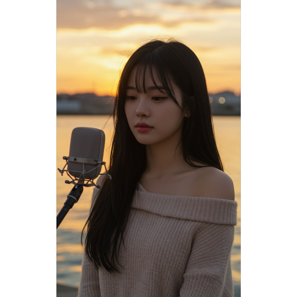 Mid-tempo Korean pop ballad, 96BPM, Bright and rhythmic clean electric guitar riff (repeating as Hook, not sung), Soft ambient pad, light acoustic harp textures, and minimal kick/snare groove (brush style) to provide subtle bounce, Intro and Outro are instrumental only, designed to convey warmth and emotion without vocals, Youthful Korean female vocals (age 17โ19), soft and breathy in verses, full chest voice in choruses, No falsetto, No robotic tone, No vocal switching, Overall tone must feel emotionally fresh, uplifting, and cinematically heartfelt