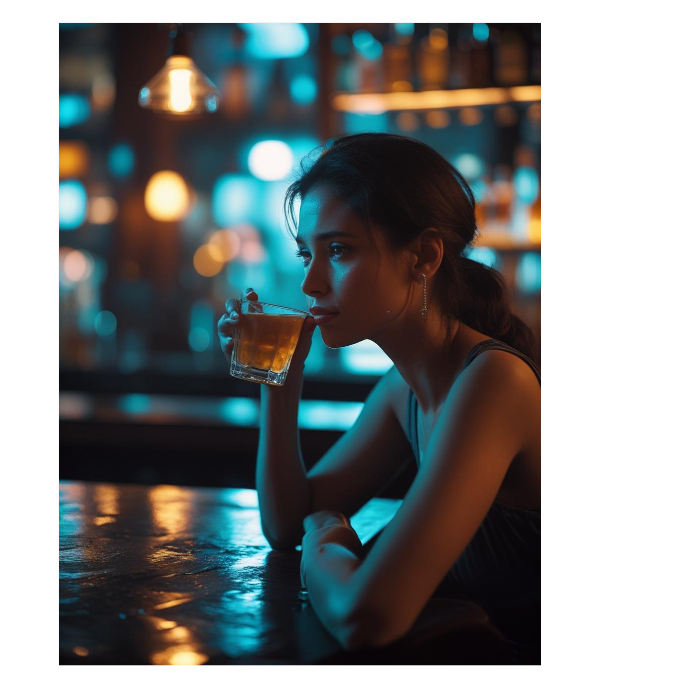 The style is a slow and moody jazz ballad, The main is a delicate piano and a warm wood bass, The brush drum gives you a light swing feeling, and the acoustic guitar is modestly chords and arpeggios, Soft saxophones that create a sense of silence at night appear everywhere, The tempo is 62 to 66 BPM, a relaxing midnight rhythm, The female vocals are soft and a sad expression with a slightly whispered voice, The mood is a bittersweet but beautiful urban night atmosphere where you tilt your glass while thinking of him alone in a quiet bar, A moist jazz for adults that suppresses emotions but exudes inner love and loneliness