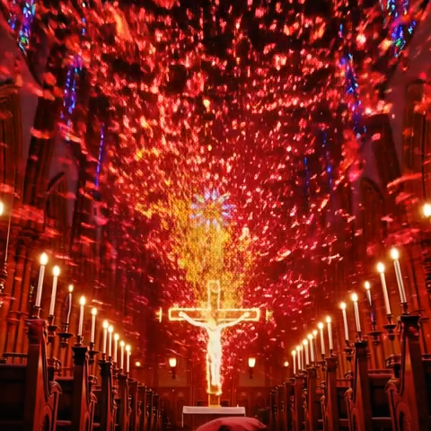Distorted bass drop after each line, Choir responses on “shine” and “saints, ”