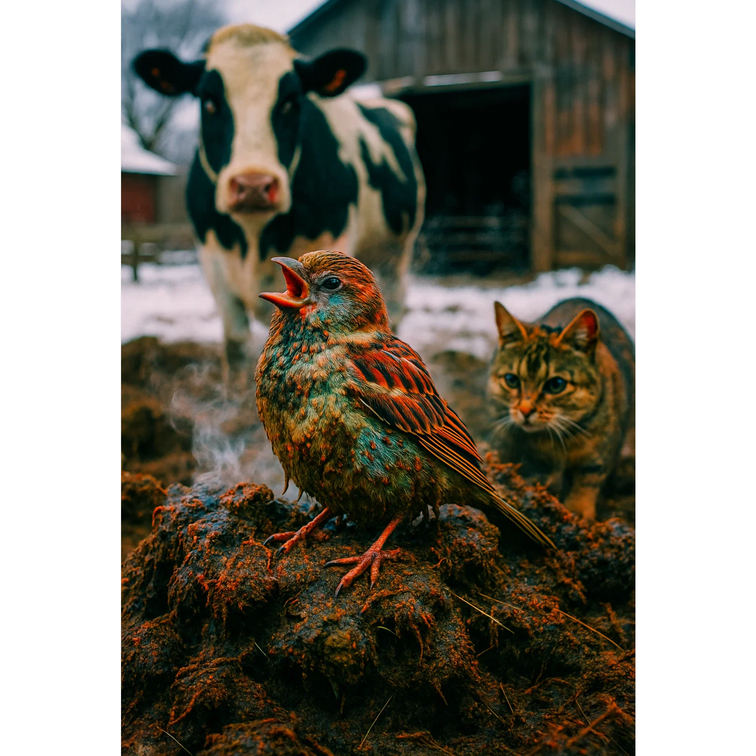 Experimental psychedelic Beatles–style track inspired by “I Am the Walrus, ” “Lucy in the Sky with Diamonds, ” and “Magical Mystery Tour, ” Surreal tape effects, playful vocal delivery with bold vowel exaggeration, and filtered megaphone lines, Wide three-part harmonies with dreamy backgrounds, Distorted piano and Mellotron textures, backwards cymbals, wah-guitar accents, and varispeed tape tricks between sections, Bass is melodic and wandering with Ringo-style tom fills, Stereo panning shifts and random spoken asides, Whimsical, unpredictable, fun — colorful chaos meets catchy pop, Use the existing lyrics provided without altering the text, Vocal personality: slightly cheeky, theatrical, psychedelic humor, Key G major, Tempo ~118 BPM