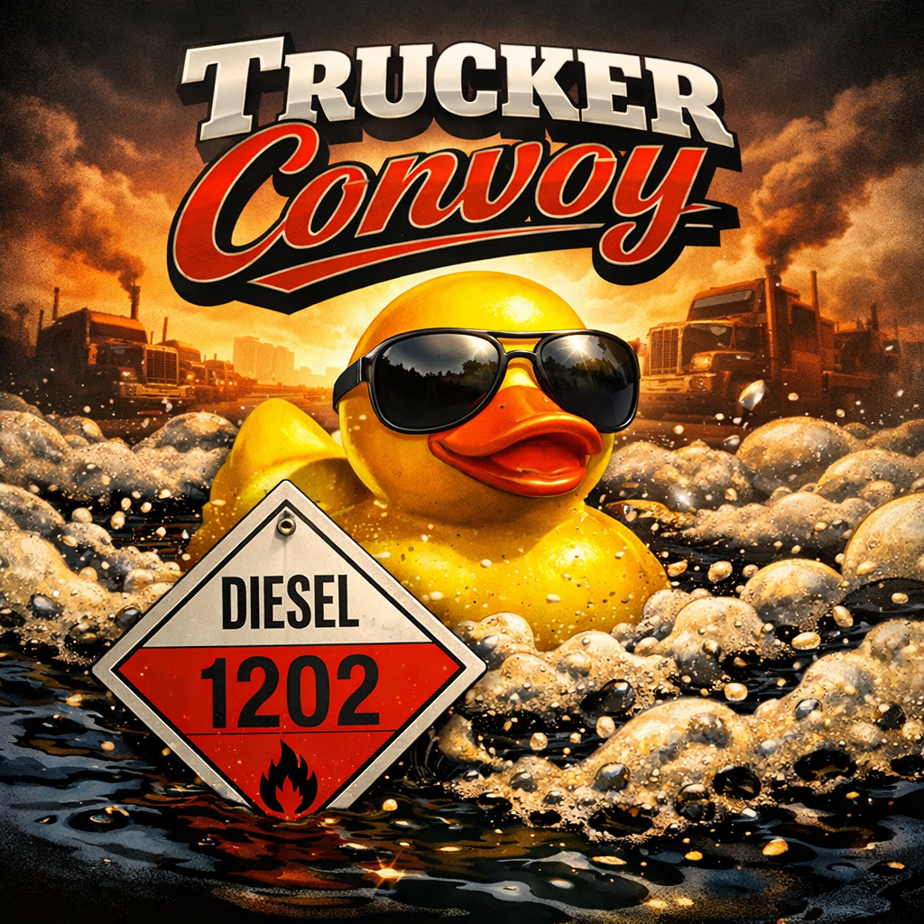 Classic 1970s country trucker song parody, spoken-word storytelling verses, warm novelty country humor, friendly CB-radio narration, upbeat and playful tone, nostalgic but original, non-political, lighthearted road-song energy, Humorous, conversational, relaxed, confident, folksy, good-natured, Analog warmth, simple arrangement, emphasis on vocals and storytelling, no modern pop gloss, sounds like a tall tale told over coffee at a truck stop, Analog warmth, simple arrangement, emphasis on vocals and storytelling, no modern pop gloss, sounds like a tall tale told over coffee at a truck stop, The song is structured around two interspersed parts: simulated CB dialogue, a spoken-word narration of the story, baritone, restrained and steady, calm but heavy with implication, conversational delivery, minimal vibrato, slightly dry tone, emotionally contained, sounds like someone admitting something difficult without dramatizing it
