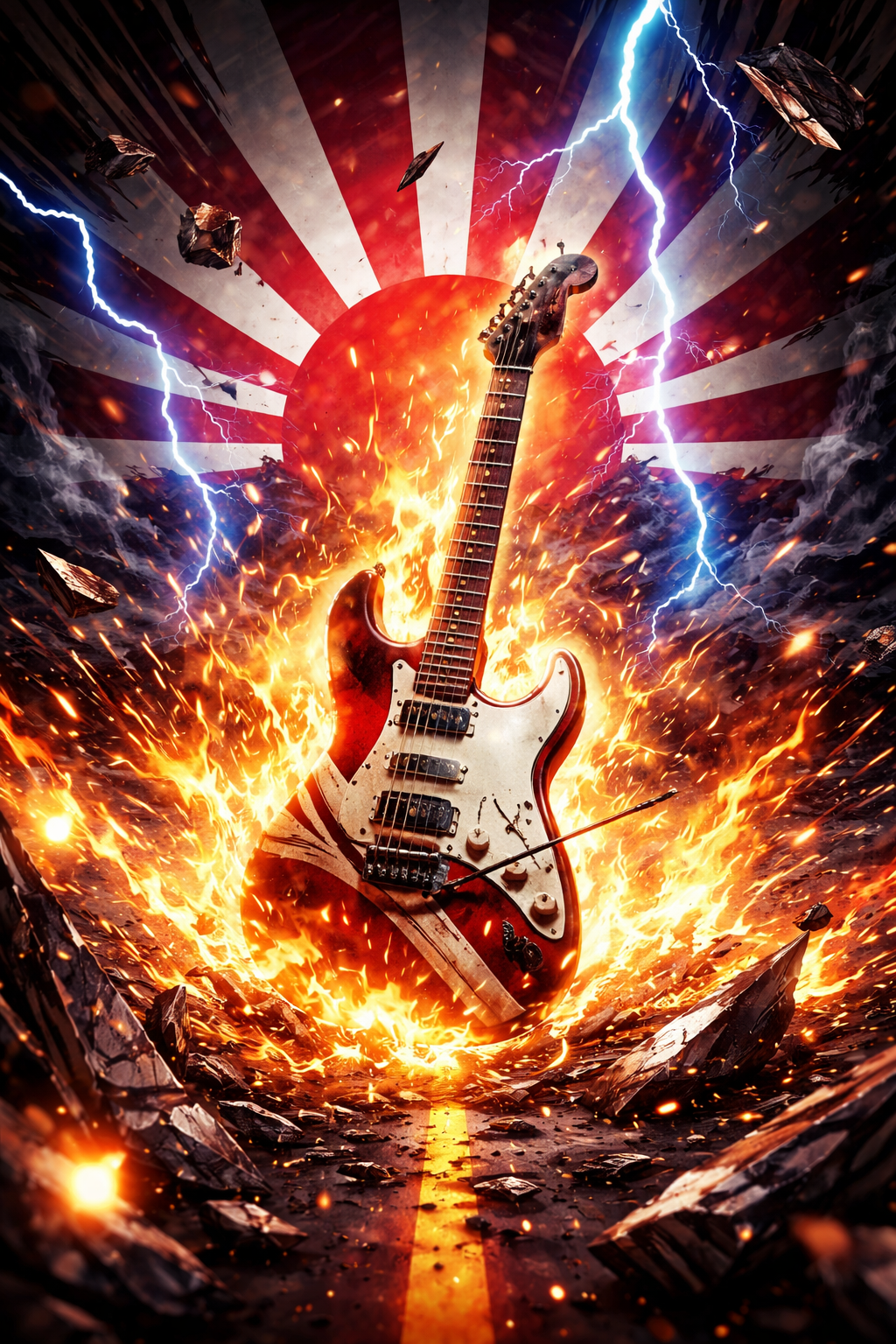 Japanese heavy metal, Loudness-inspired speed metal, aggressive 80s metal energy, Fast tempo, galloping rhythm guitar, palm-muted power chords, sharp pinch harmonics, high-gain Marshall-style tone, Driving bass locked tightly to kick drum, Thunderous double-kick drums with big snare hits, High-pitched, gritty male vocals with urgency, strain, and melodic scream phrasing similar to Minoru Niihara, Anthemic chorus, relentless forward motion, no breakdowns that slow momentum, Urgent, raspy high-register metal vocals, slightly strained but controlled, emotional panic and defiance, shouted accents on key words, sustained screams on chorus endings