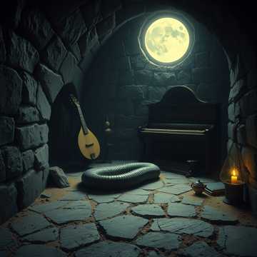 Pure instrumental variation on the Groundsiders anchor theme, mythic hunter on cracked flagstones, dark poetic late-night introspection, cinematic storytelling, sparse folk-rock warmth, ancient frontier mystery, analog saturation, Antique instruments; bardcore lute and harpsichord playing smooth jazz on a late night with bodhran and brushed snares and cymbals, Bar stories building to a failed climax and beaten but not broken end 80 BPM, B minor, -Vocals, -Lyrics, ‑Vocals, ‑Lyrics