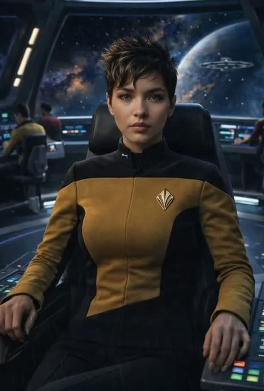 Angular art rock with a subtle dark country backbone, Mid-tempo, steady but slightly mechanical groove, Clean electric guitar riffs, dry and sharp, Prominent bassline carrying the melody, Analog synth lines, cold, melodic, slightly dissonant, Understated slide guitar woven into the background, Female vocal expressive and theatrical, detached but human, Mood: cosmic curiosity turning into unease