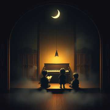 Piano, deep male voice, orthodox chant, cartoon, funny, sound effects, sound, glitch